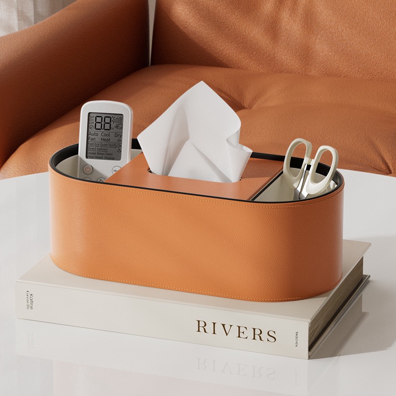 • 雙格設計:面紙盒+筆筒,收納更整齊